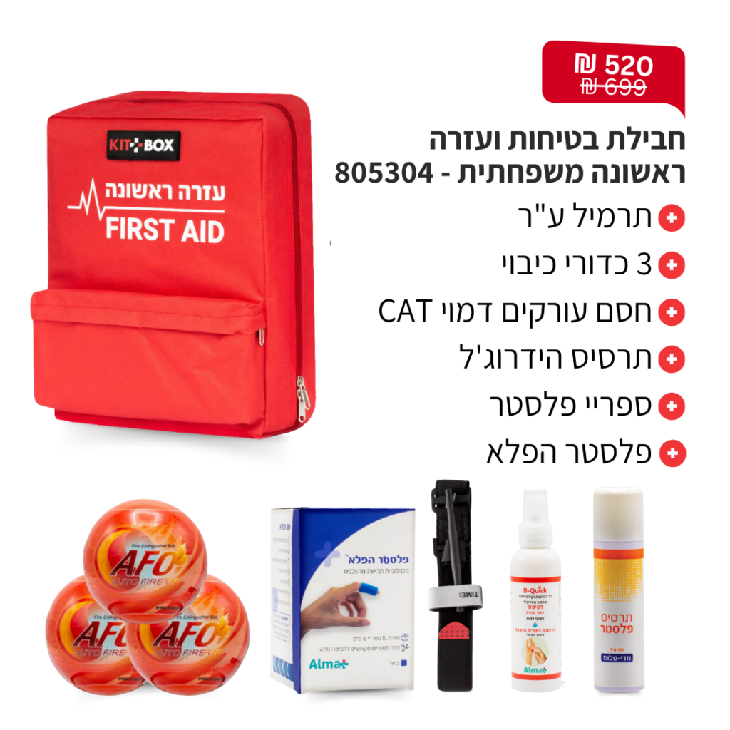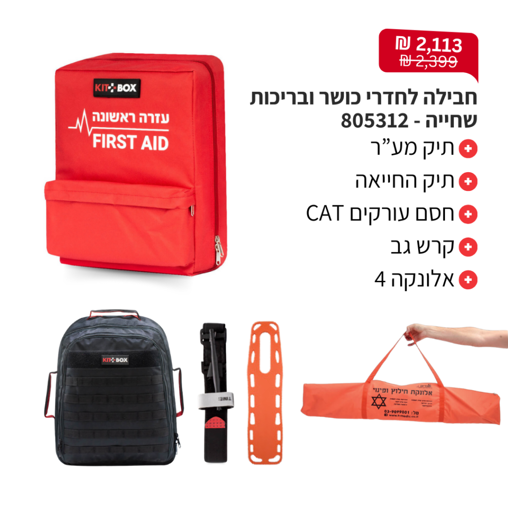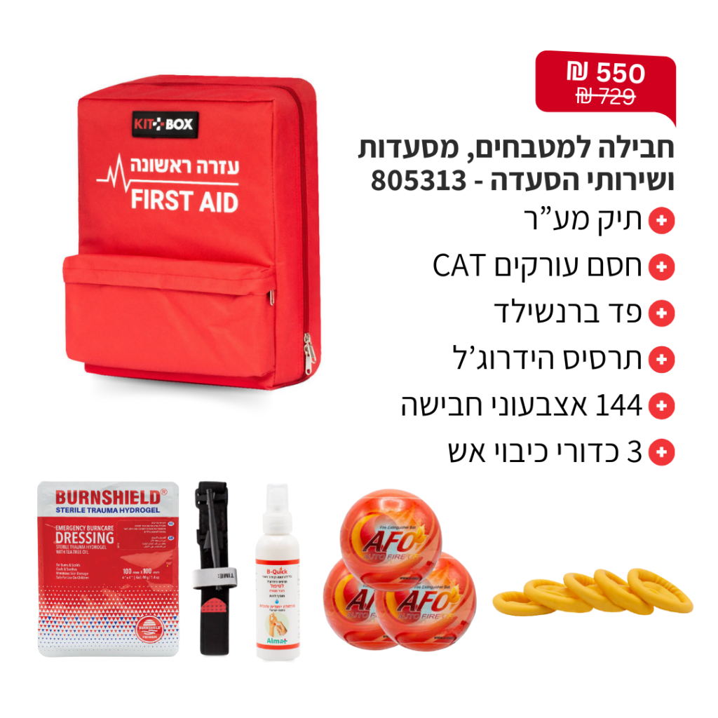 פולידין, תחבושת אישית, מספרי חיתוך, פדי גזה, אגד גזה, תחבושת אלסטית, כפפות חד"פ, סד לקיבוע שבר \ נקע ותרסיס כולדין