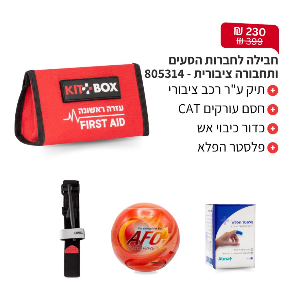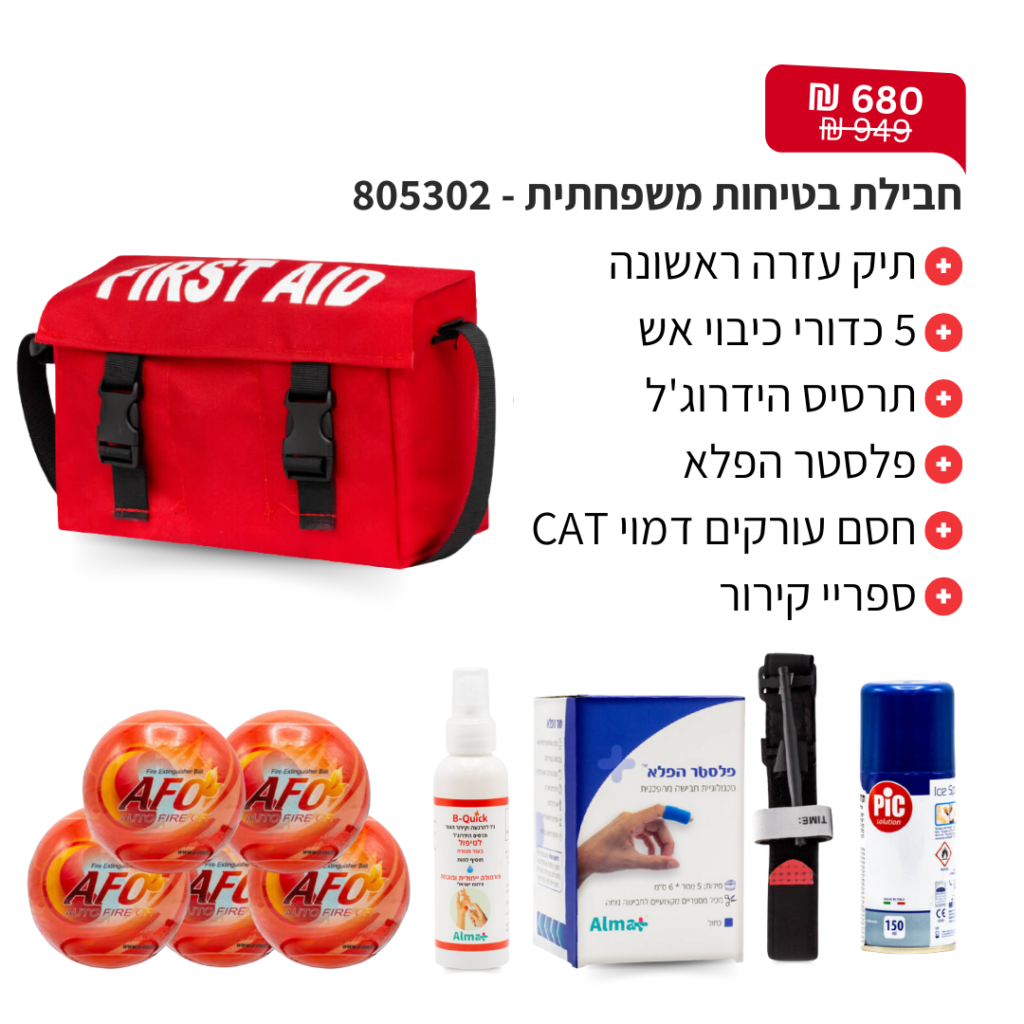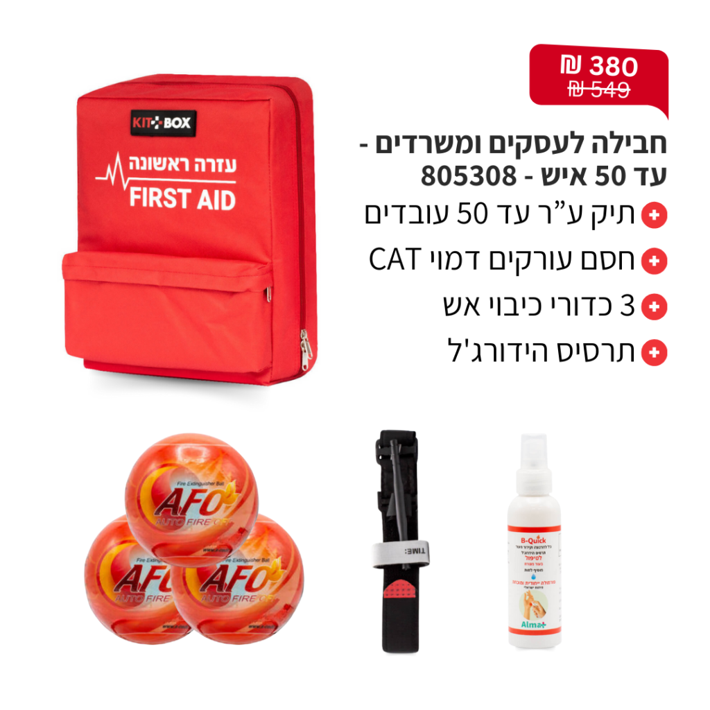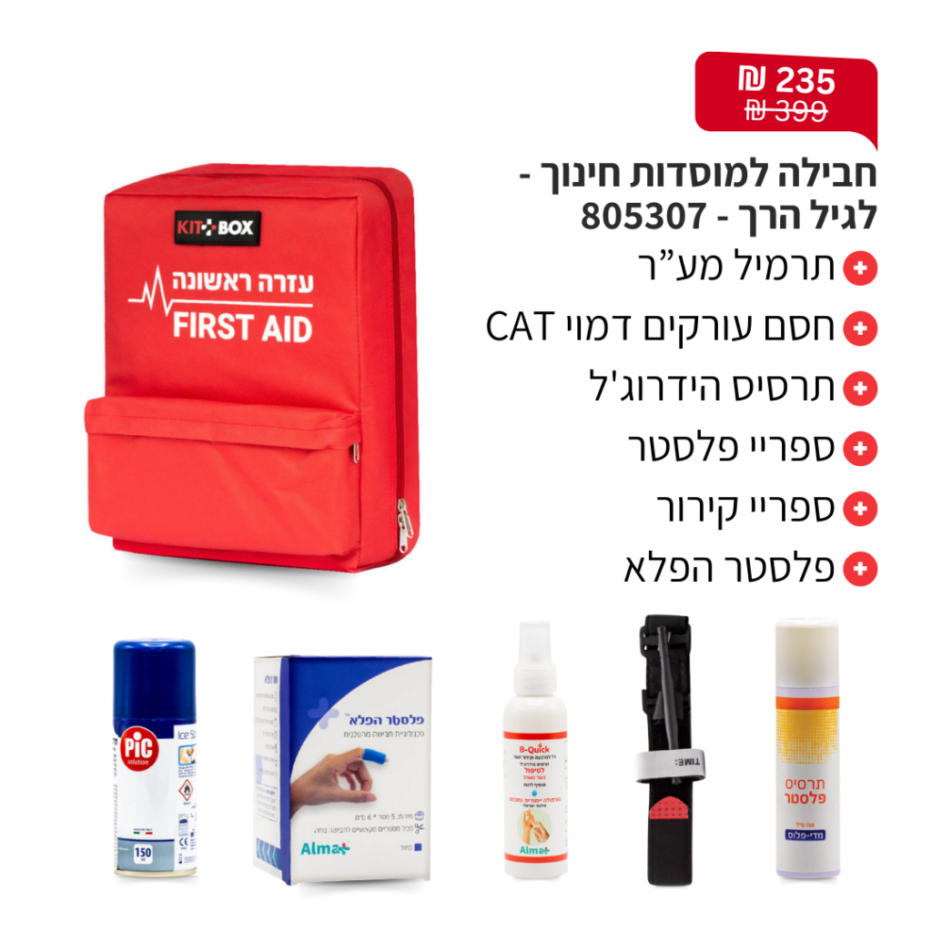 פולידין, תחבושת אישית, מספרי חיתוך, פדי גזה, אגד גזה, תחבושת אלסטית, כפפות חד"פ, סד לקיבוע שבר \ נקע ותרסיס כולדין